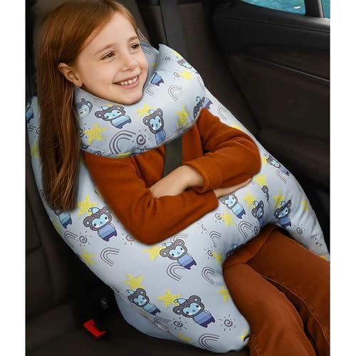 H HOMEWINS Barn resekudde ultramjuk nackkudde nackstöd söt nackhörn tvättbar nackstödskudde resa sovkudde för bil flygplan (tvättbjörn)