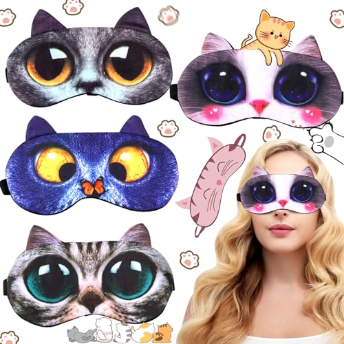 4 st sovmask, djurmask, söt katt sömnbindel, ögonskydd för barn, flickor, män, kvinnor för sömn, meditera eller resa