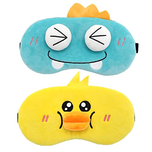 WANGCL 2-pack mörkläggning sömn ögonmask, söt djur plysch tecknad ögonmask mjuk fluffig ögonskugga sovmask skuggskydd ögonlapp för barn vuxna kvinnor natt tupplur resa djup sömn