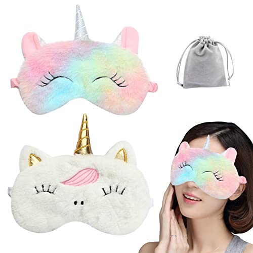 2 st söt sovmask, enhörning tecknad ögonmask för resor tupplur sömn lunchpaus övernattningsfest, mjuk plysch ögonbindel ögonskydd för kvinnor flickor barn