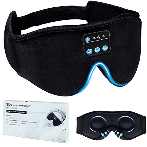 ZUXNZUX Bluetooth sömnmask, 3D sömnmask för kvinnor män, sovmask med hörlurar för resor Siesta Yoga Sidosovare Flygplan sömnmeditation (Svart)