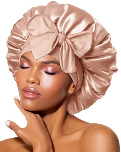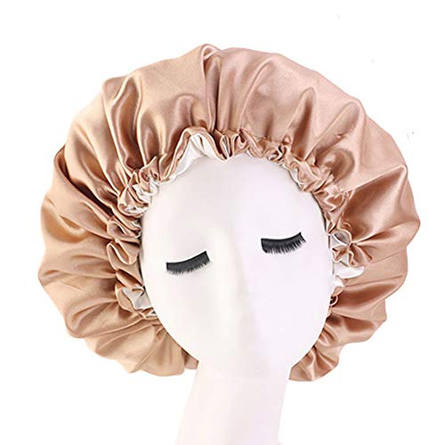 BONNET QUEEN Satin Sovhuvor för Damer Silkesmössa för Sovande Kvinnor, Stor Satin Sovmössa med Justerbart Huvudband för Lockigt, Champagne