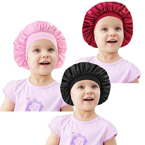 Simoda Barn satin hättor brett band satin natt sovmössa småbarn hår hätta sovmössa för naturligt hår toddles spädbarn nyfödda flickor (#1)