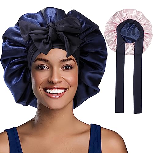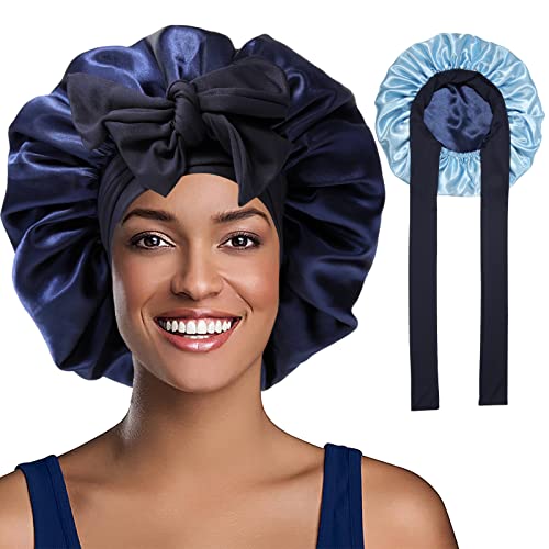 Awefeel Dubbelskikts satin sovmössa för långt hår, flätor, dreadlocks, lockigt hår, Medium marinblå, M
