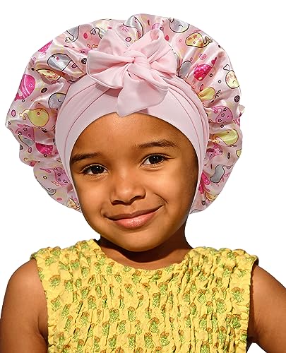 Simoda Barn satin hättor brett band satin natt sovmössa småbarn hår hätta sovmössa för naturligt hår toddles spädbarn nyfödda flickor (#2)