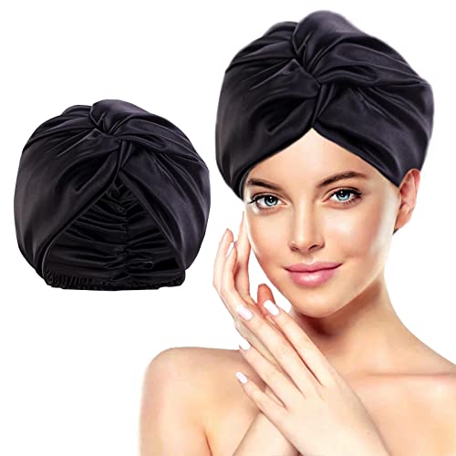 AWAVM Sidenmössa för sömn, sovmössa, siden, silkesbonnet, supermjuk konstsilke hårvård, nattmössa, satin bonnet hårmössa med elastiskt band, lämplig för tvätt, smink och sport, svart