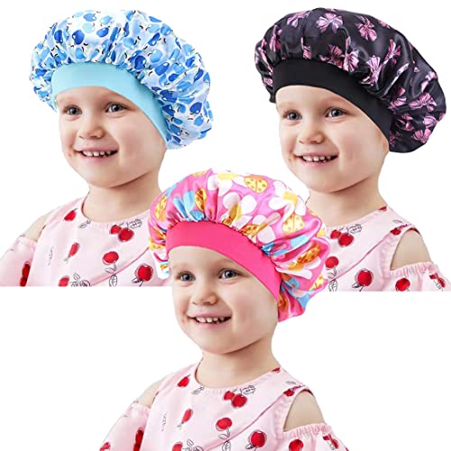 KASESSS 3 stycken sidenmössor för att sova, barn sovmössa Bonnet, silke sovmössa, tecknad satin hårmössa, mjuk duschmössa, hårmössa för natten för flickor pojkar tonåringar, Rosa, lila, mintgrön