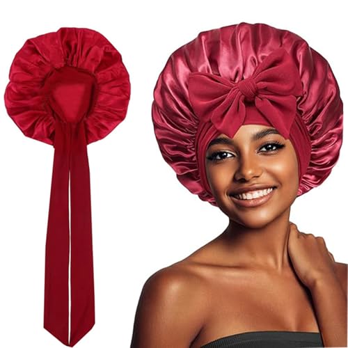 BONNET QUEEN Satin Sovhuvor för Damer Silkesmössa för Sovande Kvinnor, Satin Sovmössa med Justerbart Huvudband för Lockigt, Bourgogne