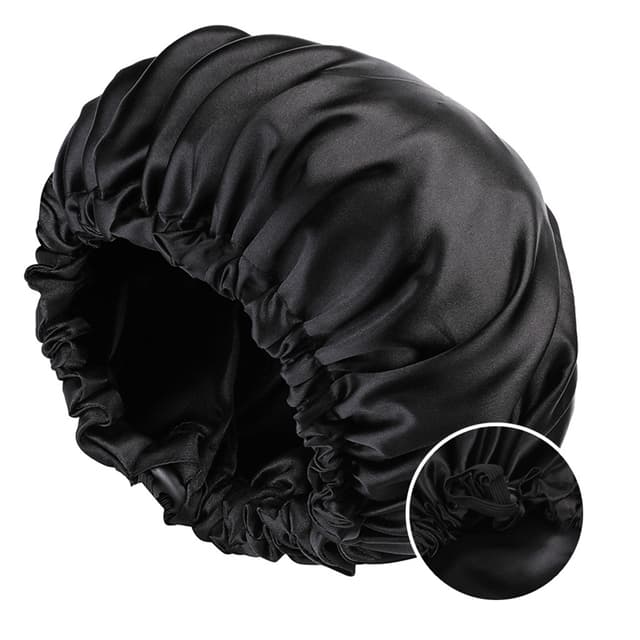 Cospack satin sovmössa – extra stort dubbelt lager vändbar justerbar satin sovmössa för att sova hår, Silver svart, one size