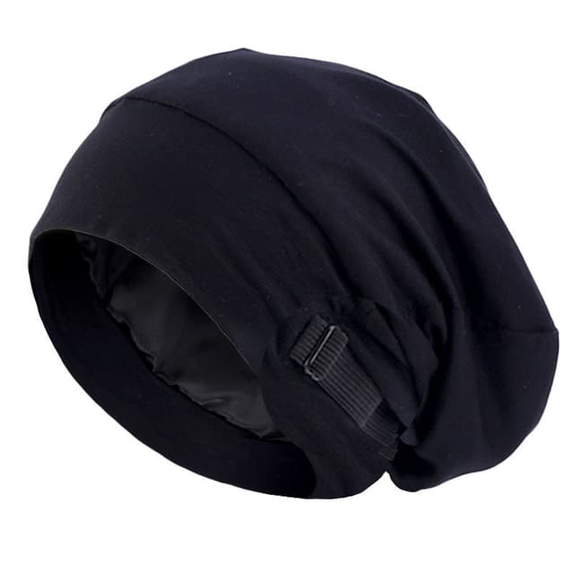 Justerbar osynlig spänne satin fodrad sovmössa - Svart