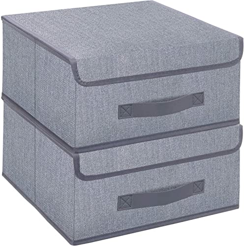 Onlyeasy Vikbara förvaringsfack kuber lådor med lock – förvaringsbox kub Cubby korg garderob organiserare paket med 2 med läderhandtag för garderob sovrum, 33 cm x 33 cm, linneliknande grå, MXDLB2P