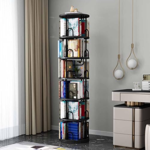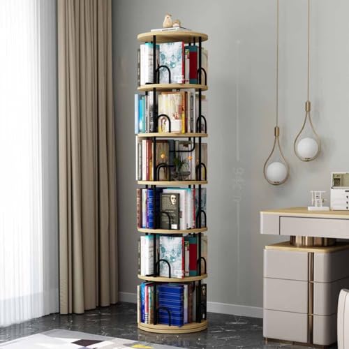 ZWPILY Roterande bokhylla/360°roterande bokhylla/mediedisplayställ torn och 5 hyllor, modern och design, kontor, sovrum, vardagsrum, bibliotek – roterande bokhylla, E, 6 golv 45 x 45 x 194 cm