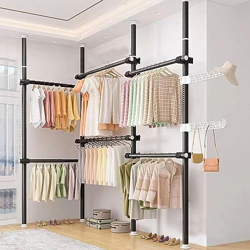 Klädställ, Teleskopiskt industrirör Klädställ Garderob Förvaringsorganisator Hängare Hylla Rack från golv till tak med 2 stång för garderob Tvättstuga Sovrum,Black,D