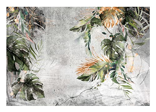 WallArena – fleece fototapet blad gröna växter monstera betong vintage retro 416 x 290 cm – fototapeter tapeter för vardagsrum sovrum fibertapet tapet 3D-effekt – inkl. lim