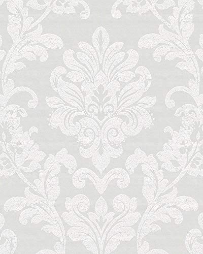 marburg barock vit blommig och glansig non-woven tapet för vardagsrum eller sovrum PREMIUM KVALITET Tillverkad i Tyskland 10,05 x 0,53m Ny 82091