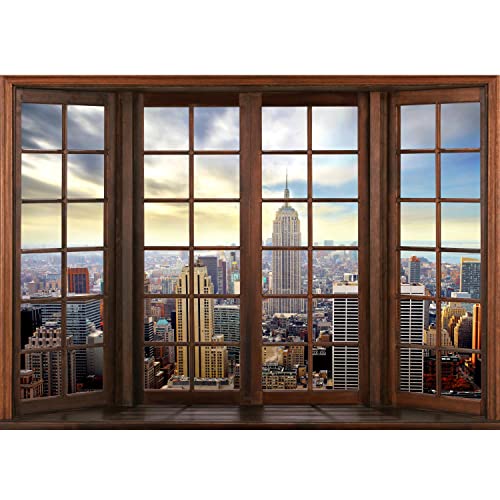 Runa Art fototapet fönster New York 352 x 250 cm fleece tapeter XXL modern tapet vardagsrum sovrum blå 9384011b