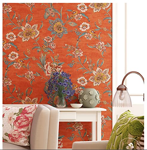 ZAHHYG Tapet orange vintage blommor tapeter för vardagsrum sovrum modern design tapet 3D tapet heminredning för TV-bakgrund tapeter väggmålningar 53 x 1 000 cm/bredd x höjd)