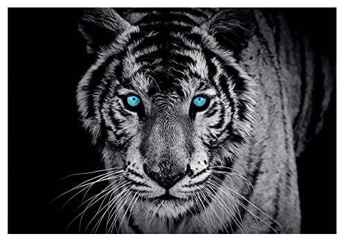 Forwall fototapet tiger djur svart vit modern vardagsrum sovrum fleece tapet tapet UV-resistent hög upplösning redo att monteras (153, VEXXL (312 x 219 cm) 3 paneler)