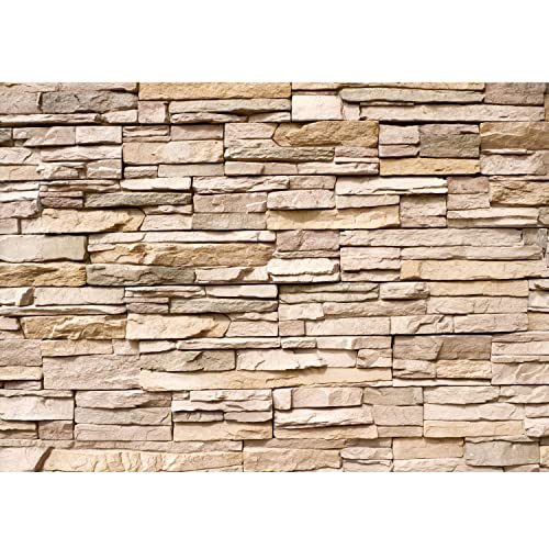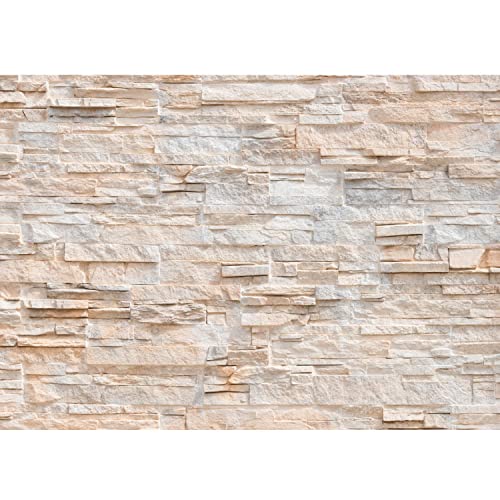Runa Art Icke-vävd tapet 396 x 280 cm 3D-effekt stenvägg | väggdekoration vardagsrum sovrum | tysk tillverkning | beige 9082012a