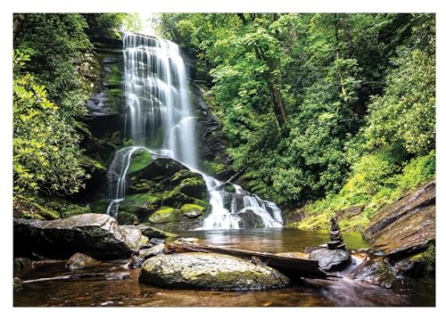 Fototapet vattenfall med skog 3D-effekt natur landskap 312 x 219 cm – inklusive lim – för vardagsrum sovrum hall fleece tapet väggtapet fibertapeter motivtapeter redo att monteras