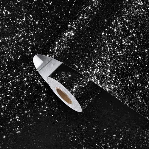 Yullpaper Självhäftande svart glittertapet för vardagsrum klibbig baksida plastrulle skala av och klistra fast barn sovrum tapet vinylwrap för möbler glitter tapetrulle 40 cm x 200 cm