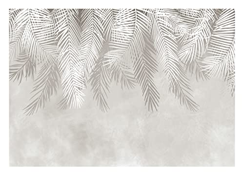 Fototapet fjädrar beige blad palmblad gräddvit fjädrar betongutseende tropiskt vardagsrum sovrum fleece tapet UV-resistent redo att monteras (13934, V8 (368 x 254 cm) 4 paneler)