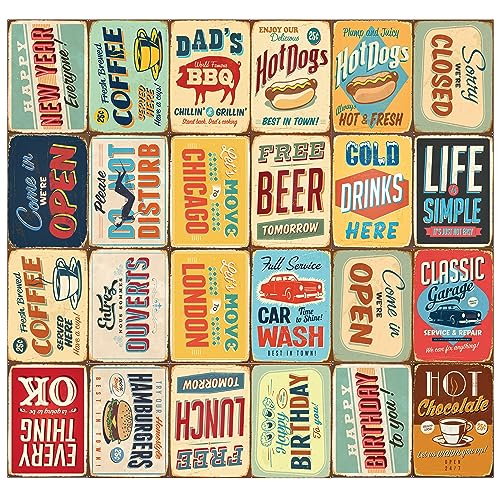 Walplus 60-UXWC-QMFQ 152 x 161 cm väggklistermärken "Vintage metallskylt collage" 1 pack avtagbar självhäftande väggdekor konstdekaler vinyl heminredning gör-det-själv vardagsrum sovrum kontor inredning tapet, flerfärgad