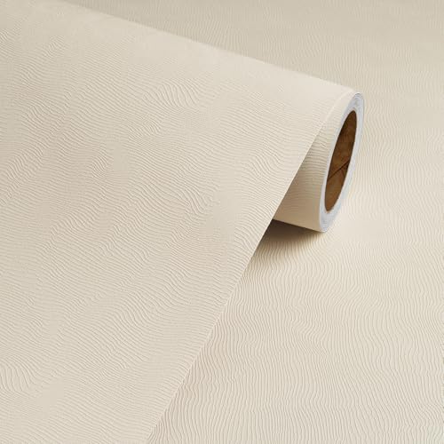 Yullpaper Beige självhäftande tapet sovrum vardagsrum texturerad tapet vintage mönster klibbig baksida plastrulle bänkskiva köksbänk vinylwrap beige foderpapper för väggar 40 cm x 800 cm