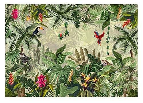 Fototapet djungel djur blad växter tropiskt vardagsrum sovrum väggtapet fleece tapet UV-resistent redo att monteras (14076, VEXXL (312 x 219 cm) 3 paneler)