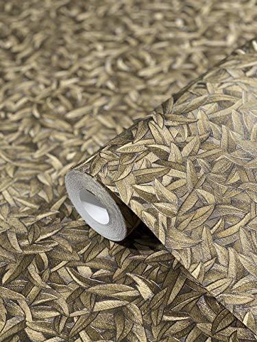 Tapet brons Betongg look blomma blommiga löv HAILEY för vardagsrum, sovrum eller kök tillverkat i Tyskland 10,05m x 0,53m premium non-woven tapet 82251