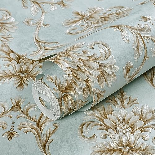 Fiula Självhäftande Tapeter Blommor 44 Cm X 10 M Tapeter Blågrå Beige Blomtapet Självhäftande Tapet Vattentät Vinyl Självhäftande Tapet Möbelfolie För Vardagsrum Sovrum Vintage Blommig Tapet