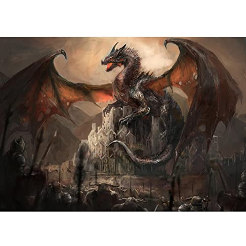 Runa Art Icke-vävd tapet Dragon Castle Knights 352 x 250 cm fleece vägg XXL väggmålningar gobeläng foto väggdekoration vardagsrum sovrum brun 9131011a