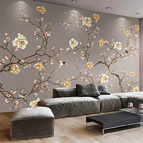 Anpassad 3D väggmålning tapet blomma och fågel konst väggmålning fototapeter heminredning för vardagsrum sovrum, 300 cm (B) x 200 cm (H)