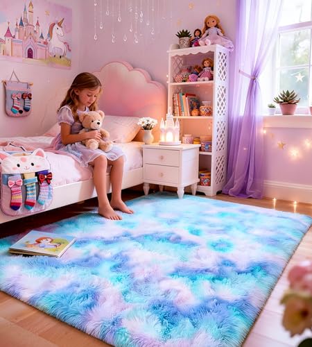 Rohatim Matta med lång lugg för vardagsrum, supermjuk lurvig matta, fluffig, mjuk matta, sovrumsmattor, supermjuk, fluffig barnmatta (regnbågsfärgad, 160 x 230 cm)
