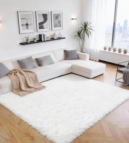 ROHATIM matta med lång lugg, vardagsrum, supermjuk lurvig matta, fluffig, mjuk områdesmatta, sovrumsmattor, supermjuk fluffig barnmatta (ren vit, 160 x 230 cm)
