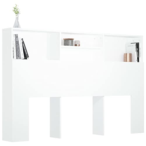 Tidyard Väggmonterat sänggavel i trä sänggavel med förvaringsskåp sovrumsmöbler vit 160 x 19 x 103,5 cm