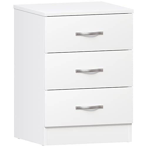 Vida Designs stort vitt sängskåp byrå, 3 lådor med metallhandtag och löpare, unikt stöd för bågande lådor, Riano sovrumsmöbler