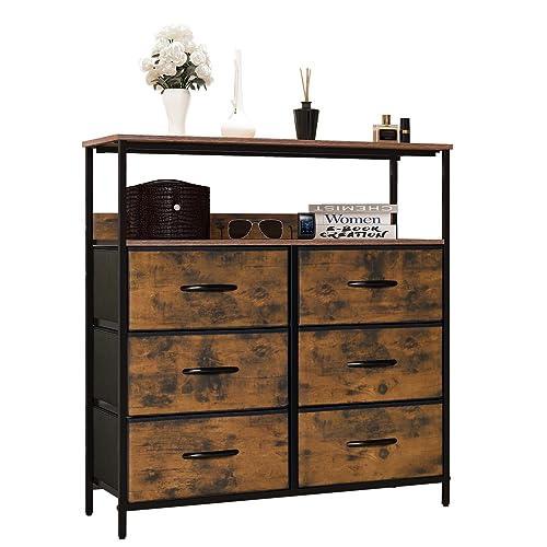 LYNCOHOME Kommod, Sovrumsbyrå, förvaringsenhet, Garderob med 6 tyglådor, sovrumsmöbler, 6 lådor byrå, lådskåp för kök, kontor, hall