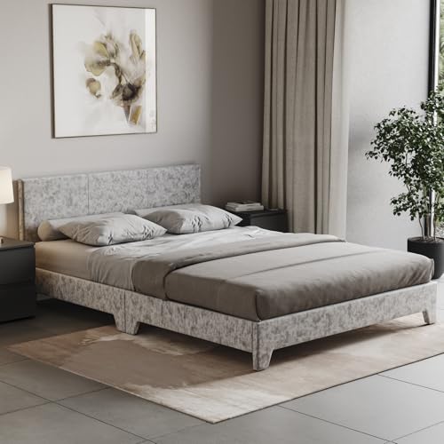 Vida Designs Victoria säng, sängram stoppad tyg sänggavel sovrumsmöbler (dubbel (4 fot), silversammet)