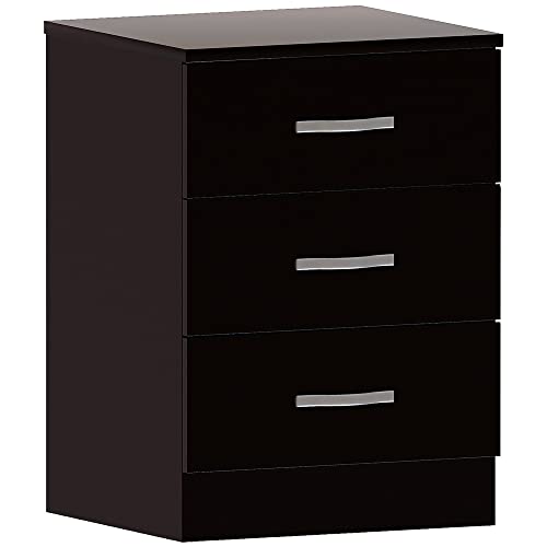 Vida Designs stort svart sängskåp byrå, 3 lådor med metallhandtag och löpare, unikt stöd för bågande lådor, Riano sovrumsmöbler