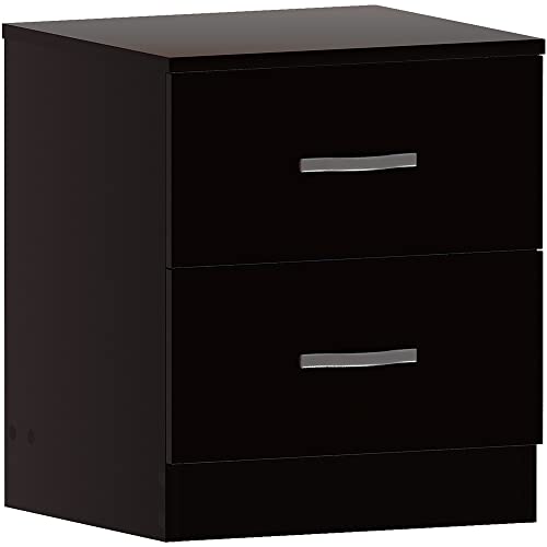Vida Designs stort svart sängskåp, 2 lådor, nattduksbord, metallhandtag och löpare, Riano sovrumsmöbler