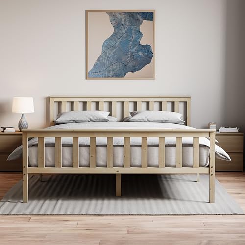 Vida Designs Milan King Size-säng, 1,5 m, sängram, massivt furu, sänggavel, hög fotände, sovrumsmöbler, furu