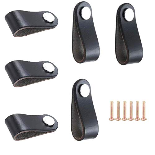 HNJKJEU Skåphandtag, set med 6 delikata läderhandtag som används för sovrumsmöbler (monohål, svart)