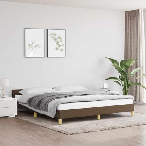 vidaXL Sängram med huvudgavel mörkbrun 180x200 cm tyg, säng, sovrumsmöbel, sängbotten, sängar, sovrumsmöbler, dubbelsäng, dubbelsängar, tygsäng