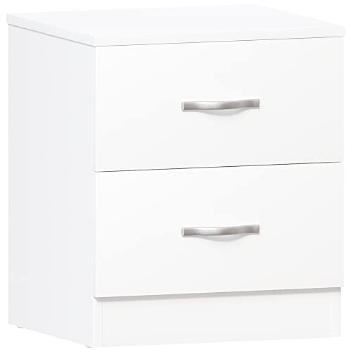 Vida Designs vitt sängskåp, 2 lådor med metallhandtag och löpare, unikt stöd för bågning, Riano sovrumsmöbler