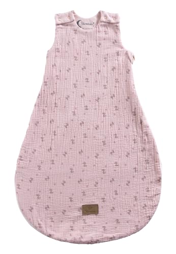Baby sovsäck åsna Emmi Girl Flora Rose muslin med jerseyfoder, nyfödd sovsäck storlek 44, delikat rosa, TOG 0,50