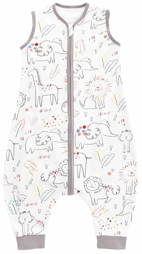 Chilsuessy babysovsäck med fötter, 2.5 TOG, året runt-sovsäck för baby, sovsäckar utan ärmar, med ben, för spädbarn/barn, Happy Zoo, 80 cm/babylängd 90–100 cm