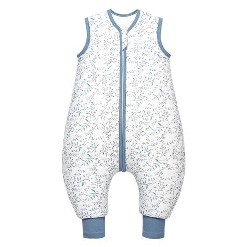 molis&co Sovsäck med fötter och strumpor – sovsäck för vår och höst – sovsäck 1 tog – lätt hymbotit – 100 % bomull (Oeko-TEX 100) -Lagoon (2 år)