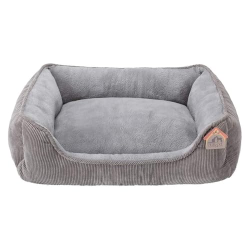 Hollypet Kattbädd husdjurssäng för katt liten hund katt plysch rektangel bo valp sovsäck husdjurskudde, ren grå M