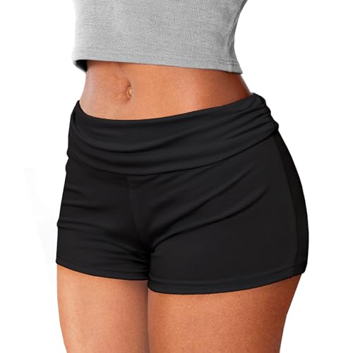 Navneet sovshorts dam, korta byxor, hotpants, fold over låg midja, sexiga pyjamasbyxor, sovbyxor, sommar, Y2k, booty-shorts, Svarta vikta overshorts, S